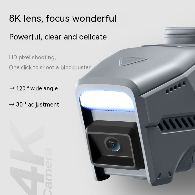 Features: 8K dual camera shooting, single paddle optical flow automatic follow, fixed height hover acrobatic motorized flight, with six-axis gyroscope self-stabilization system.