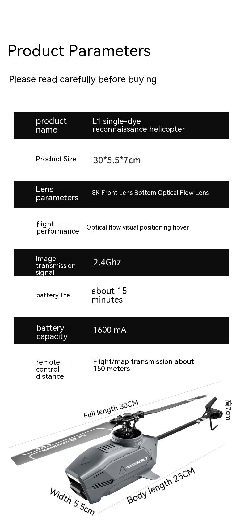 Color: L1 single paddle remote control helicopter (8K dual aerial photography optical flow automatically follows fixed height hover stunt flight)